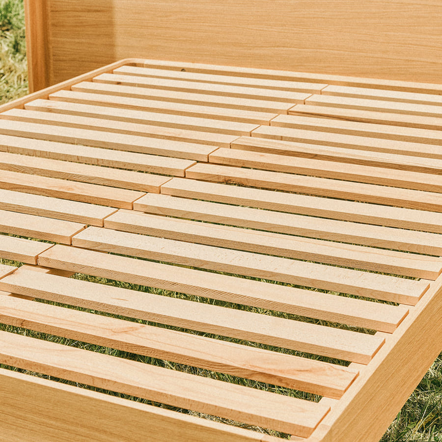 Da Kipli, concepiamo il sommier come un naturale prolungamento del materasso. Doghe a vista non coperte, legno massiccio certificato PEFC, assenza di pannelli melaminici: ogni dettaglio è pensato per favorire la traspirabilità e la durabilità.
