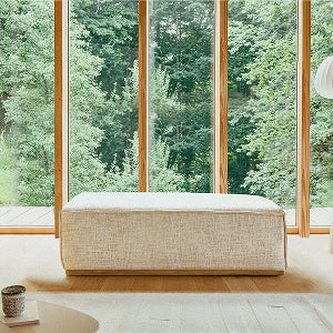 I pouf Kipli sono realizzati in legno massello, lino, cotone riciclato e imbottiture naturali, a seconda dei modelli.