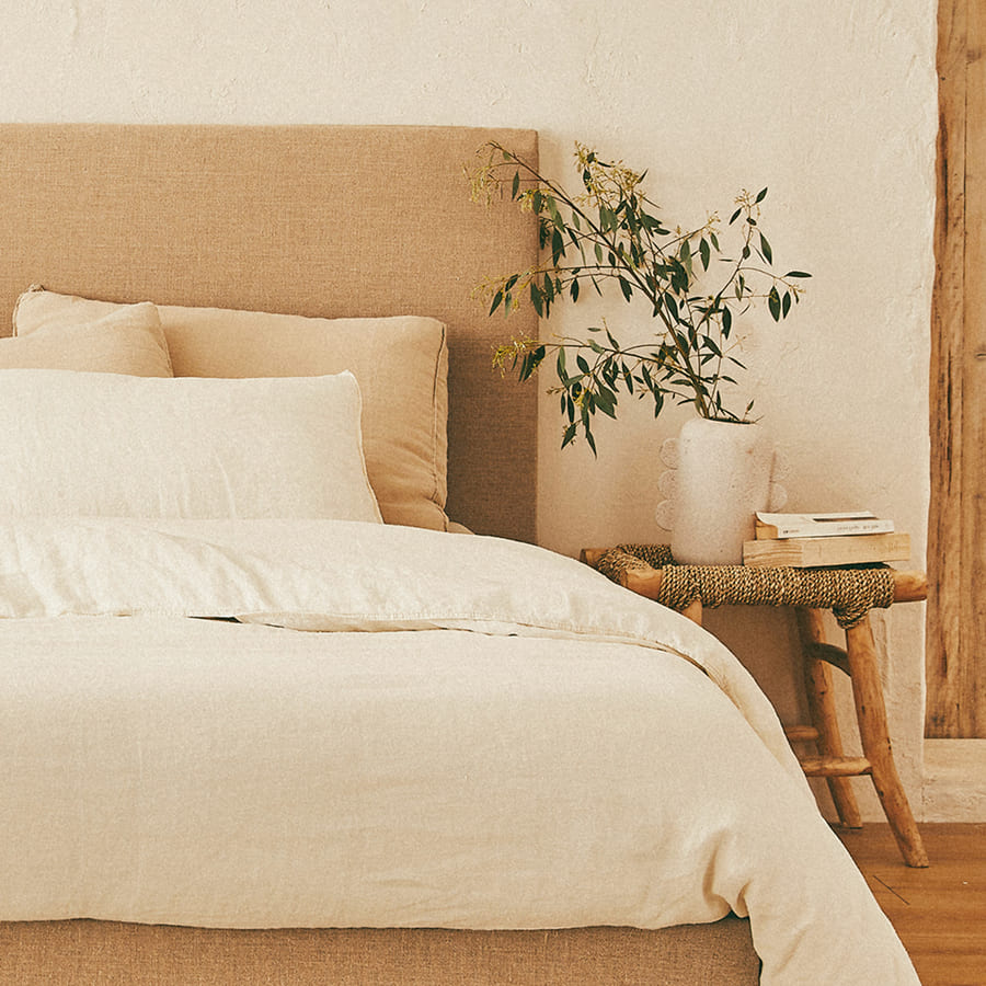 Il lino è una fibra resistente e traspirante che invecchia bene con una manutenzione leggera. Una spolverata regolare o una pulizia delicata sono sufficienti per preservarne l'aspetto. La sua superficie naturale non trattiene facilmente odori né allergeni, il che lo rende una scelta adatta a una camera sana.