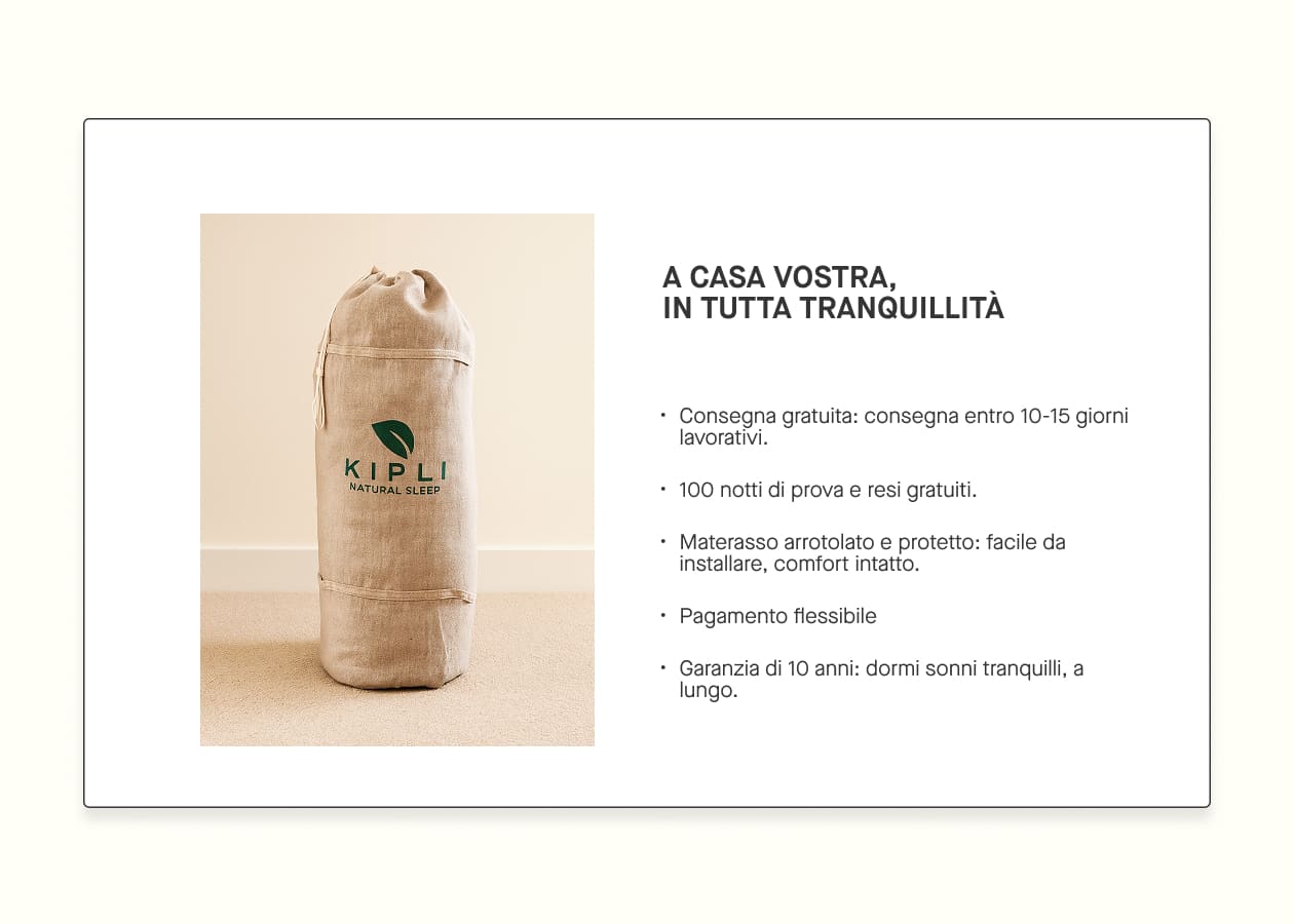 - Nessun trattamento chimico né schiuma sintetica, naturalmente antiacaro e antibatterico
