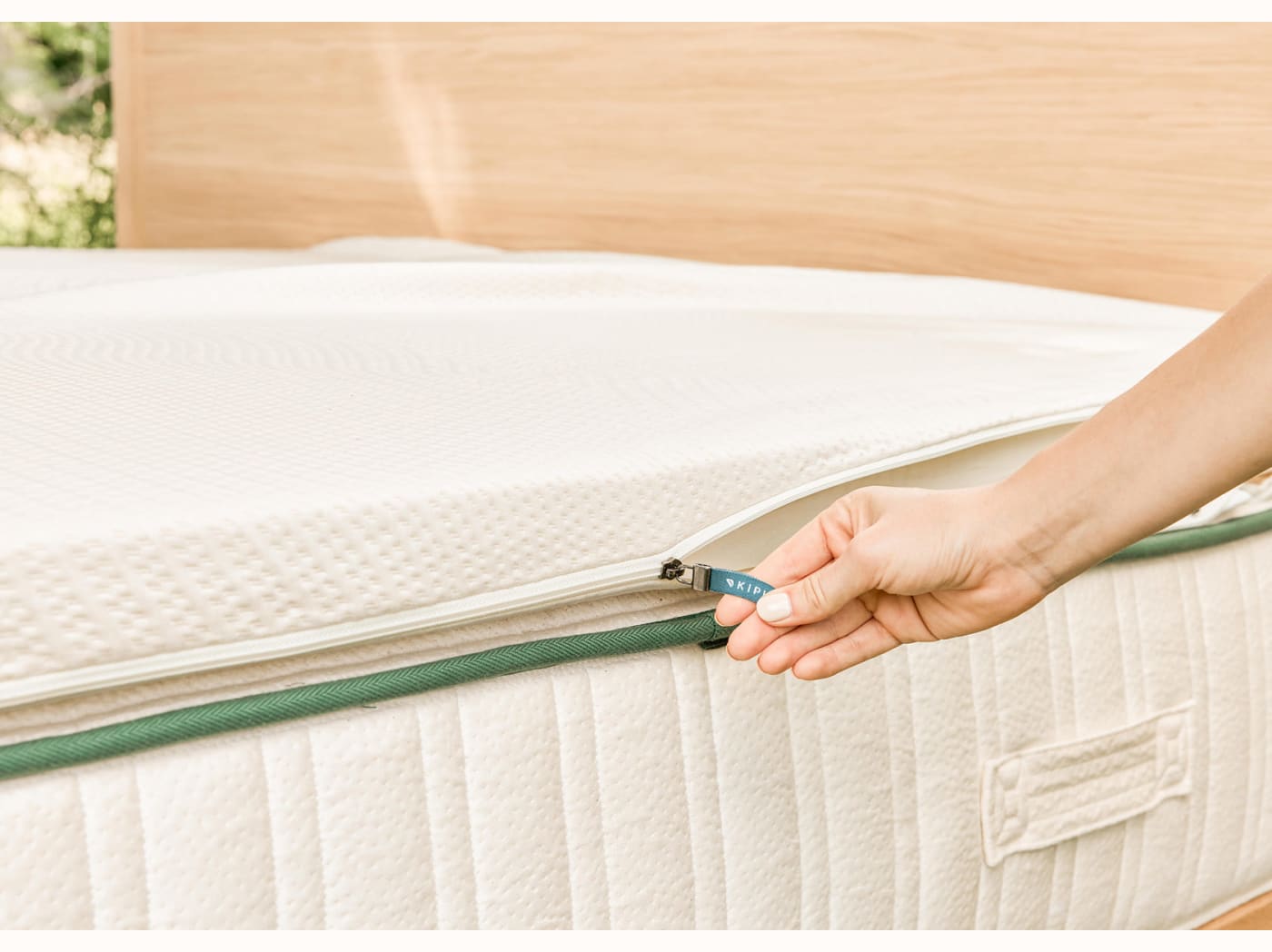 Il topper in lattice naturale Kipli offre un'accoglienza morbida pur mantenendo il supporto del tuo letto. Una composizione 100% naturale che unisce un'anima in lattice naturale e una fodera in cotone biologico e Tencel®.